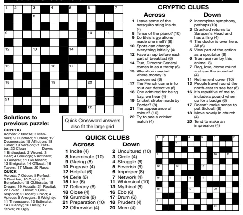 Improper - 19 answers | Crossword Clues We found 19 answers for the crossword clue Improper. A further 44 clues may be related. Are you looking for more answers, or do you have a question for other crossword enthusiasts? Use the "Crossword Q & A" community to ask for help. If you haven't solved the crossword clue Improper yet try to search our Crossword Dictionary by entering the ... Improper, indelicate - Crossword Clue, Answer and Explanation I believe the answer is: indecent. I'm a little stuck... Click here to teach me more about this clue! I believe this is a double definition. 'improper' is the first definition. (similar in meaning) 'indelicate' is the second definition. (similar in meaning) › word › lewdLEWD - crossword answers, clues, definition, synonyms, other ... Regards, The Crossword Solver Team If you have a moment, please use the voting buttons (green and red arrows) near the top of the page to let us know if we're helping with this clue. We try to review as many of these votes as possible to make sure we have the right answers. en.wikipedia.org › wiki › Cryptic_crosswordCryptic crossword - Wikipedia A cryptic crossword is a crossword puzzle in which each clue is a word puzzle. Cryptic crosswords are particularly popular in the United Kingdom, where they originated, Ireland, Israel, the Netherlands, and in several Commonwealth nations, including Australia, Canada, India, Kenya, Malta, New Zealand, and South Africa.