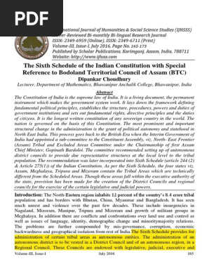 PDF The Sixth Schedule of the Indian Constitution areas mentioned in the Sixth Schedule Part II as the Agent of the President of India. 2.2: Almost all the recommendations of the Bordoloi Sub-Committee were considered and accepted by the Con-stituent Assembly. The makers of the Indian Constitution made such constitutional arrangements for the hill people
