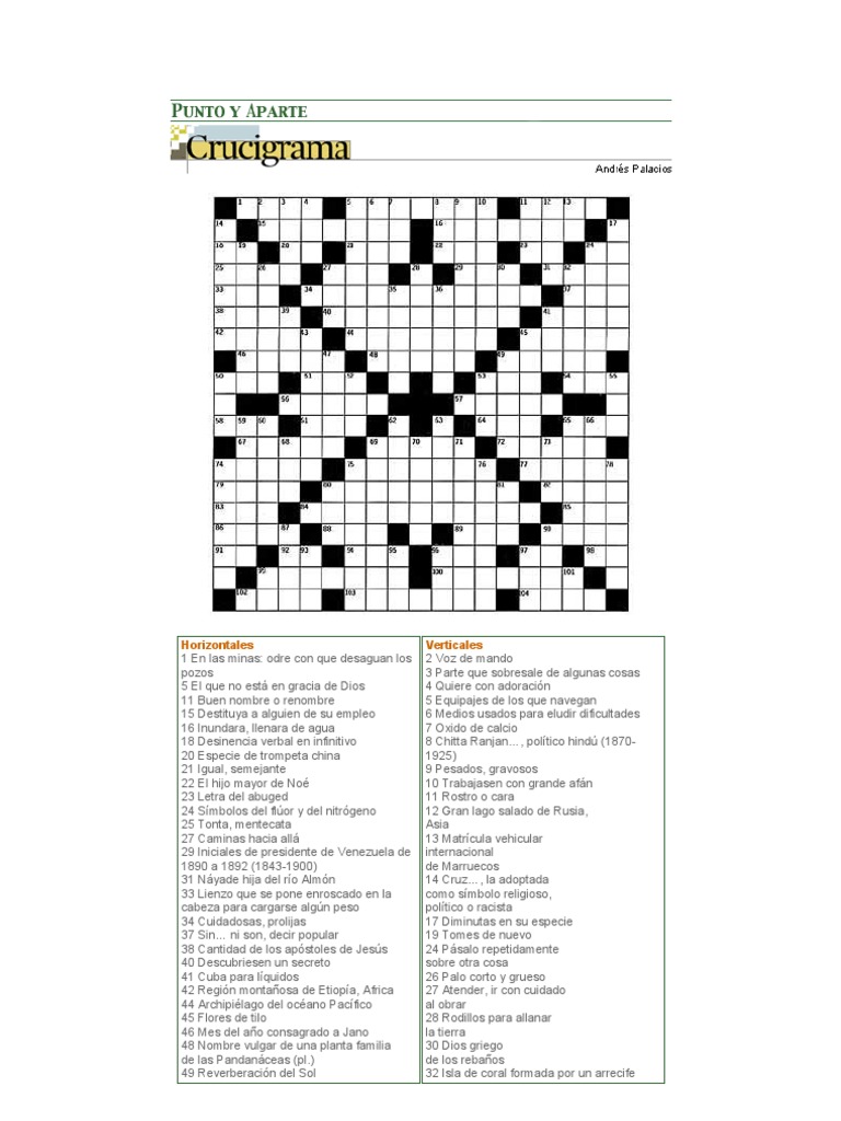 Millones de crucigramas para imprimir, fáciles, difíciles, para niños, etc Puedes elegir la temática que quieras y obtendrás crucigramas fáciles o difíciles, crucigramas para niños o especializados en una temática concreta. Esta página está optimizada para que al clicar en el botón imprimir se oculte automáticamente todo lo que no tenga que ver con el crucigrama.