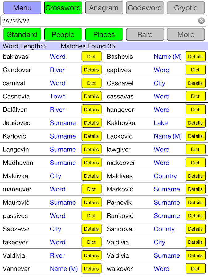 Seiko Oxford Crossword Solver Pocket Edition - amazon.com Crossword Solver - 250,000 words from the Oxford Crossword Dictionary ; Knowledge Viewer - Scroll though the 256 thematic lists ; Knowledge Finder - Keyword/wildcard search across all 256 thematic lists ; Abbreviation Solver - Decodes over 10,000 abbreviations ; Thesaurus - 2.5 million Synonym Links
