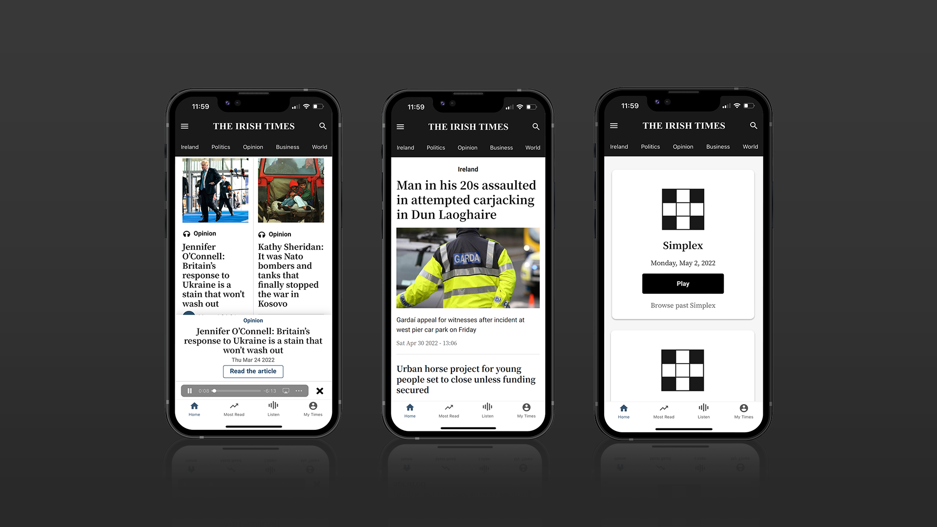 The Irish Times News 12+ - App Store Stay connected with The Irish Times free app to get award-winning reporting and analysis from our team of writers and columnists. The app brings you breaking news from Ireland and around the world, with comprehensive coverage of the latest in business and sport. ... The digital version of Simplex and Crosaire Crosswords, and Sudoku. Curated ...