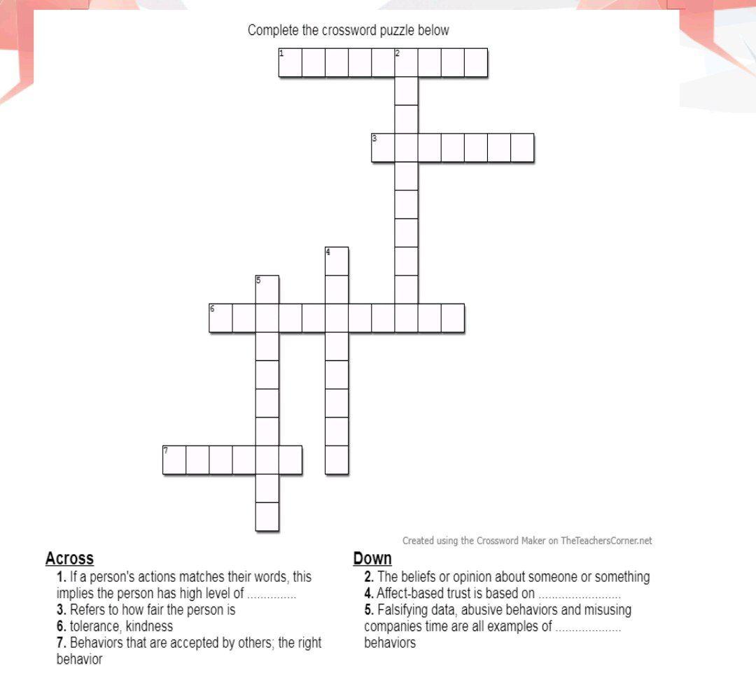 Complete the crossword puzzle by filling in the correct word Given below is a crossword puzzle based on this lesson. Use hints to fill in the blank spaces with letters that complete the words. Down (D) 1 : Thorough washing. 2 : Animal fibre .. erated into a crossword puzzle. The crossword puzzle review aid was given to one group and a review of just the key terms used on the crossword were given to.