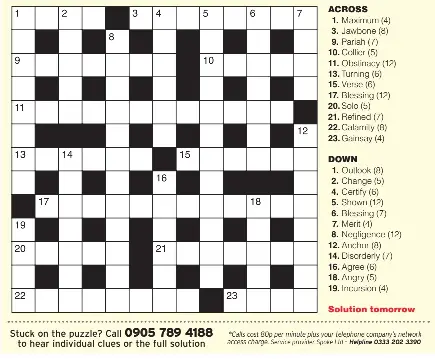 puzzles.independent.co.uk › daily-quick-crosswordBest Daily Quick Crossword - Arena Independent Play Best Daily Quick Crossword instantly online. Best Daily Quick Crossword is a fun and engaging Online game from The Independent. Play it and other games from The Independent. PDF Quick crossword no 16,350 Quick crossword no 16,350 1 2 3 4 5 6 7 8 9 10 11 12 13 14 15 16 17 18 19 20 21 22 23 24 Across 1 It can't easily be described in French (2,2,4,4) 9Anointed (5) 10 ... › quicksolveCrossword Solver Quick Solve - Free Online Missing Letter Solver Crossword Quick Solve If you'd like us to try and find the answer to your elusive crossword clue then simply use the box below. Enter just the letters you do know in the appropriate slots.